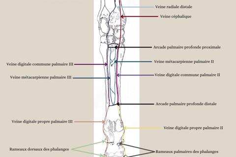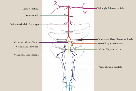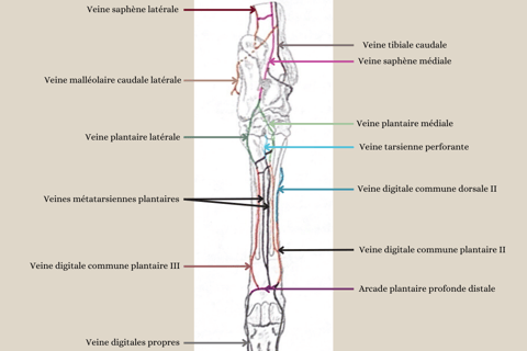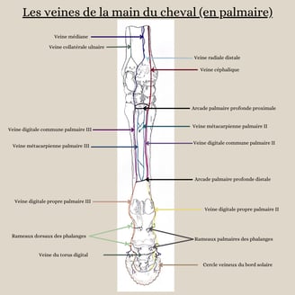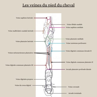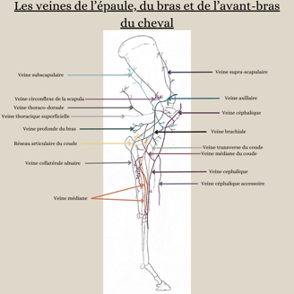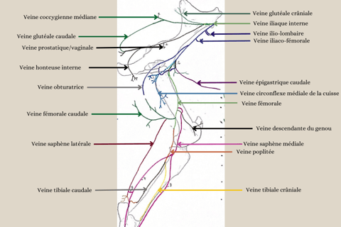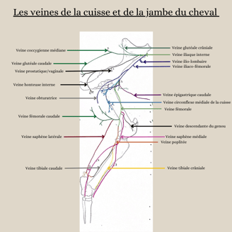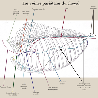Les veines sont les vaisseaux sanguins qui ramènent le sang pauvre en oxygène et riche en CO2 vers le cœur. Un mauvais retour veineux pourrait entraîner une stagnation de sang riche en déchets et CO2 dans le corps et pourrait avoir un impact sur la santé du cheval.