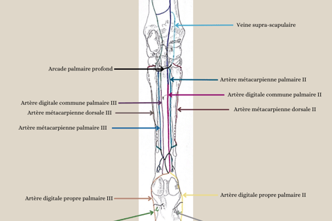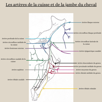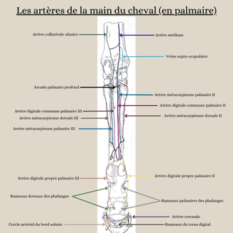 Elles sont situées en profondeur ainsi le cheval, même s’il se blesse atteint généralement plus facilement une veine qu’une artère. Une artère si elle est touchée engendre de plus graves soucis qu’une veine car la pression sanguine y est plus fort et une fois ouverte le sang en sortira plus vite.