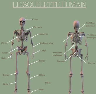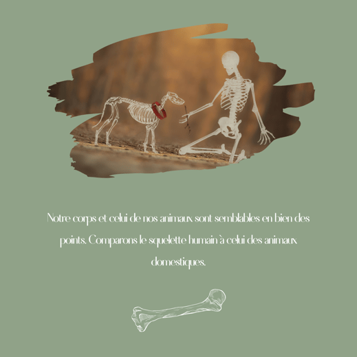 Le corps humain et celui de nos animaux domestiques sont semblables au niveau du squelette. La différence se fait principalement au niveau du nombre d'os.